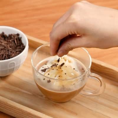 Garnish with chocolate shavings